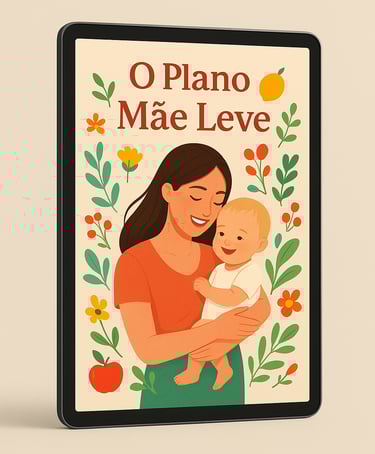 Nas páginas do O Plano Mãe Leve você aprende soluções reais para semanas reais — sem fórmulas mágicas, sem complicações, sem culpa.